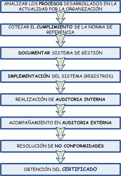 De una forma sencilla, los pasos seguidos por AMI para implantar un Sistema de Gestión, en la mayoria de los referenciales, son: